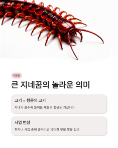 ✅ 큰 지네: 막대한 재물운과 사업 번창, 리더가 될 아이를 상징하는 귀한 태몽.